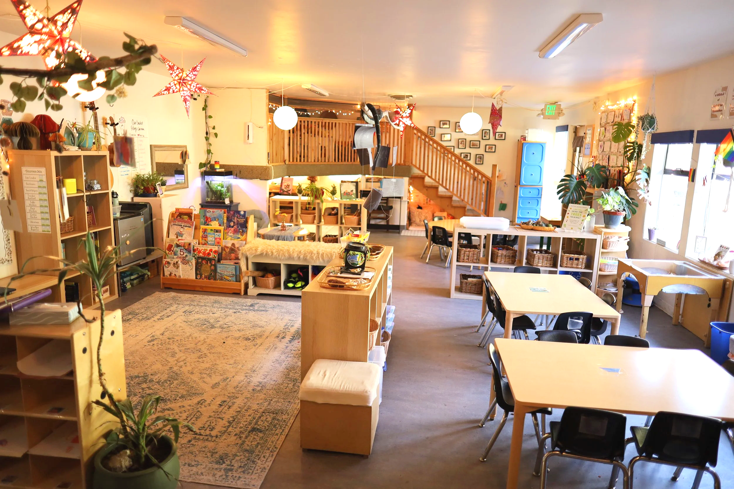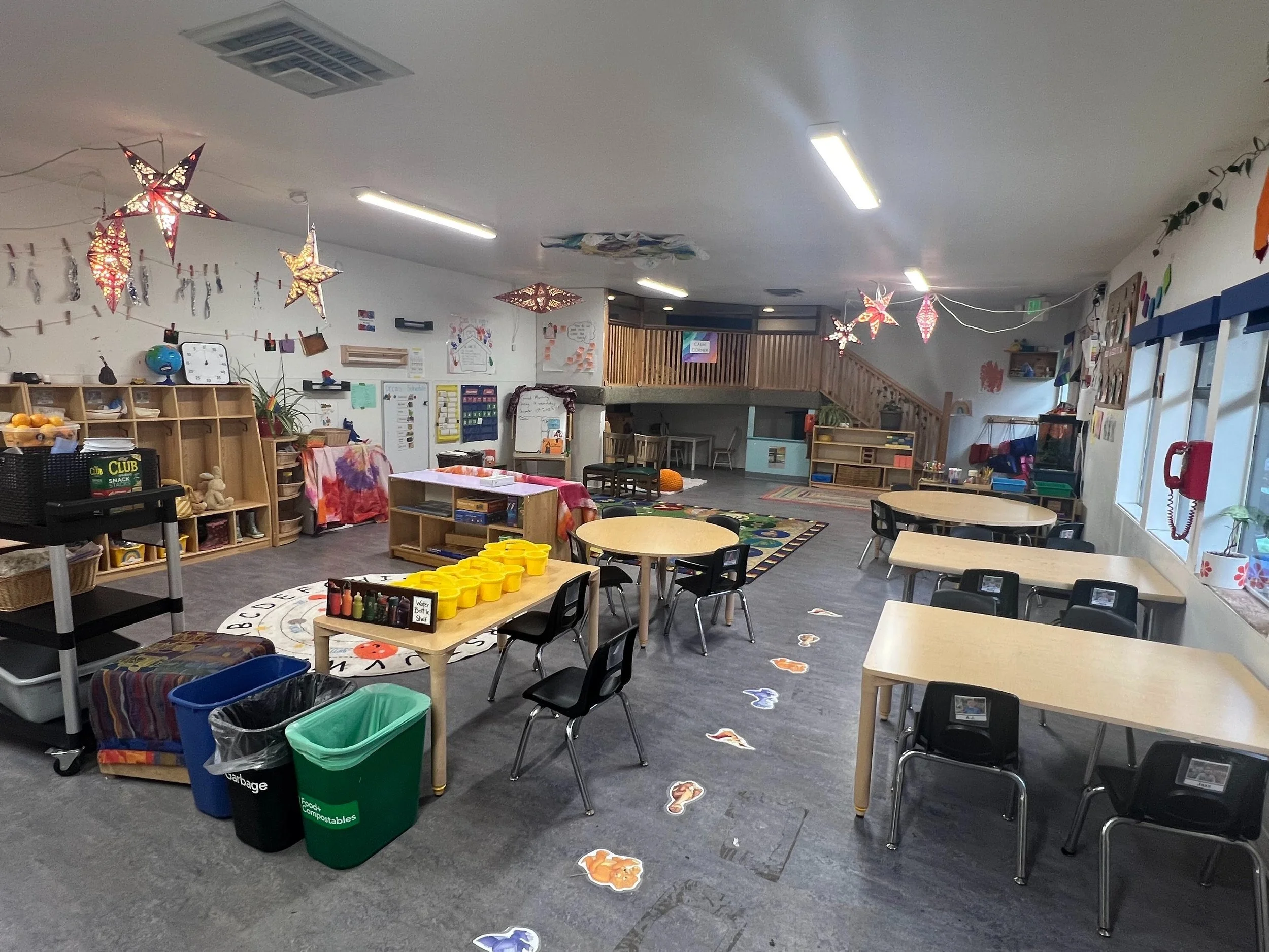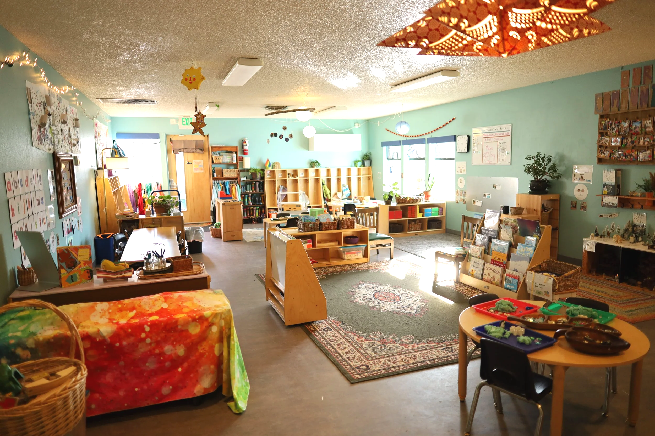 At Community School of West Seattle, we thoughtfully design our classrooms to feel warm, calm, and inviting. Soft lighting, natural materials, and rich textures help create a cozy, home-like environment where children feel safe to explore, create, and connect. Inspired by the Reggio Emilia philosophy, we view the environment as a “third teacher” that supports curiosity, creativity, and meaningful learning.